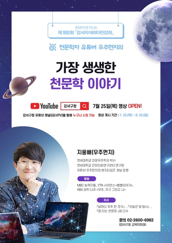 서울 강서구(구청장 진교훈)는 '가장 생생한 천문학 이야기'라는 주제로 제182회 강서지식비타민강좌를 진행한다고 밝혔다.