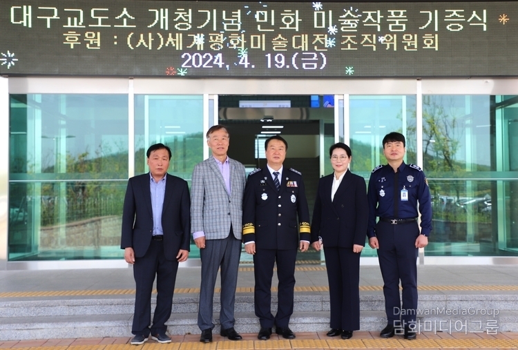 이번 기증식은 세계평화미술대전 조직위원회 이사장 이존영이 김동현 대구지방교정청장에게 대구교도소 이전 개청을 기념하여 수용자 교정교화를 위한 미술작품을 기증한 것이다.