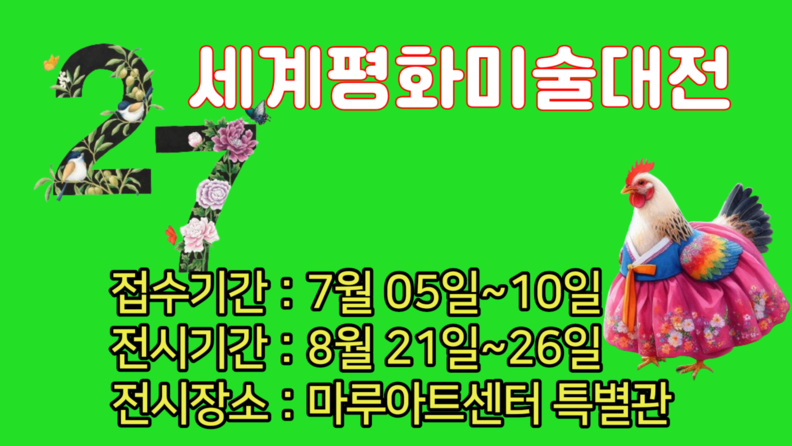 입상자 확인은 세계평화미술대전 홈페이지 세계평화미술대전 (wpae.co.kr)에서 확인할 수 있으며, 전시작품은 8월 21일 오후 1시부터 4시까지 인사동 마루아트센타 지하 1층으로 1점씩 접수해야 한다.