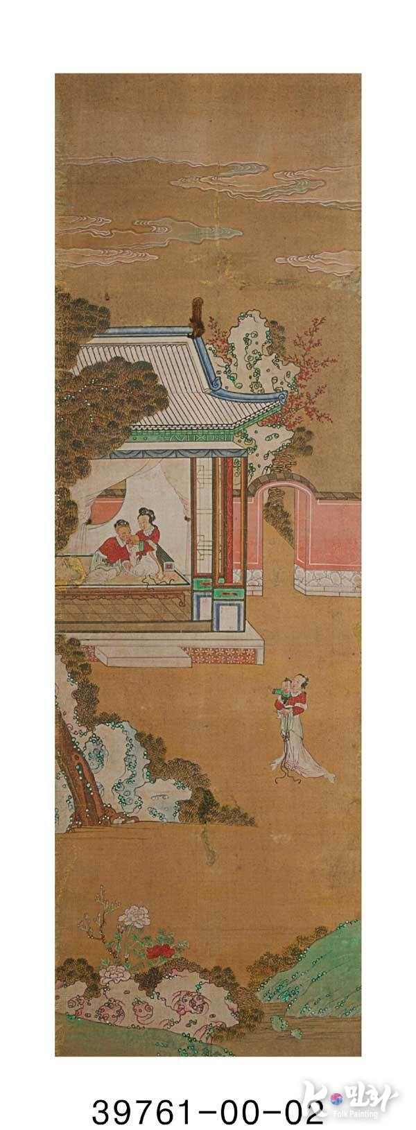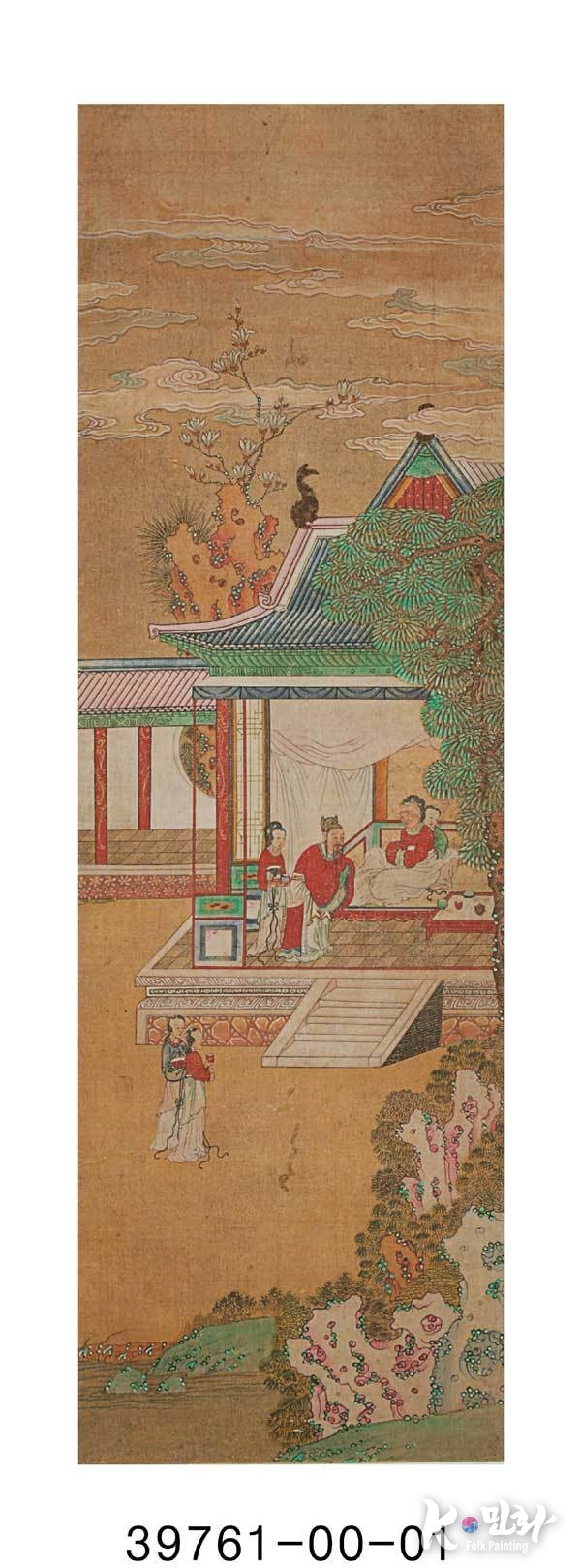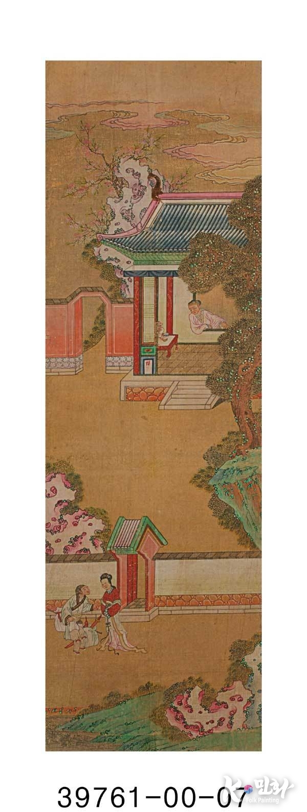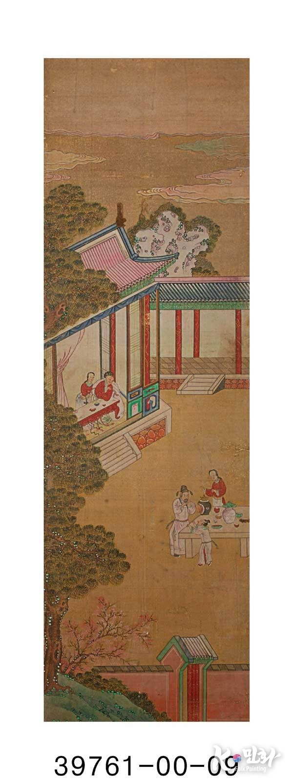 K-민화 이성준 기자 | 효자들의 효행과 관련된 내용을 그린 10폭 병풍. 저본채색(苧本彩色). 화폭(세로 120, 가로 38). 5폭씩 2개로 분리됨. (접힌 크기 : 세로 184, 가로 49, 두께 15).