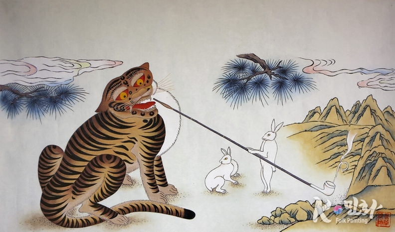 Analyzing and interpreting folk paintings and legends is therefore one of the most important topics in anthropology and cultural studies. “A rabbit lights a cigarette for a smoking tiger” is one of the most famous stories in Korean folk paintings. It depicts a tiger and a rabbit together, often with the tiger smoking a cigarette.