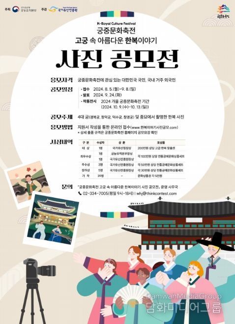 K-민화 이존영 기자 | 국가유산청 궁능유적본부는 국가유산진흥원과 8월 5일부터 9월 8일까지 ‘고궁 속 아름다운 한복 이야기’를 주제로 한 사진 공모전을 개최한다.