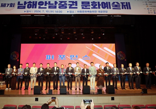 하동군립예술단의 식전 공연으로 시작을 알린 10일 개막식에는 9개 참여 시군 단체장과 지역예술인이 한자리에 모여 '예술로 하나 되는 남해안남중권' 비전을 제시했다.