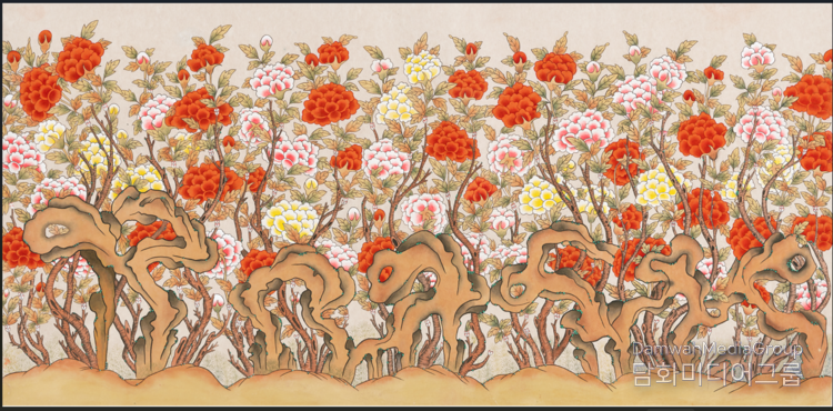 The painting depicts a strange rock found in nature, Goeseok, and a peony, which symbolizes wealth and honor, and it ehas become one of the most representative genres of the Joseon Dynasty.