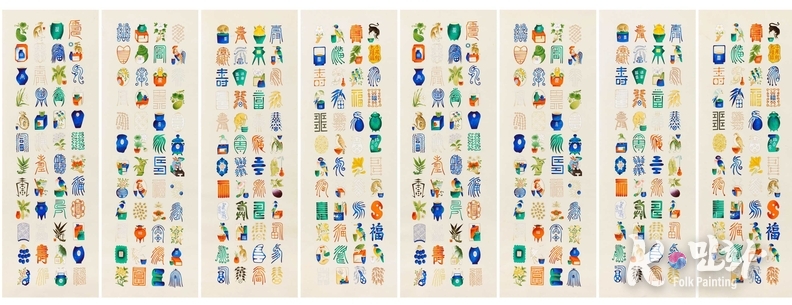 K-민화 이성준 기자 | 백수백복도百壽百福圖는 한국 전통 K-민화 중 하나로, 장수와 복을 기원하는 의미를 담고 있는 그림이다. ‘백수百壽’는 백 가지의 ‘수壽’를 의미하며, 이는 장수를 기원하는 뜻을 내포하고 있다.