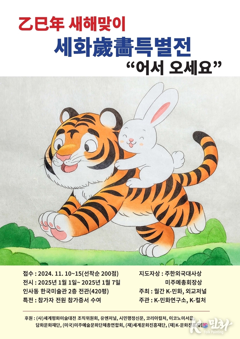 후원 : UN저널, 시민행정신문, K-컬처, K-민화, 코리아컬처, 담화문화재단, (사)세계평화미술대전 조직위원회, (재)K-문화진흥제단, K-민화연구소, 담화미디어그룹