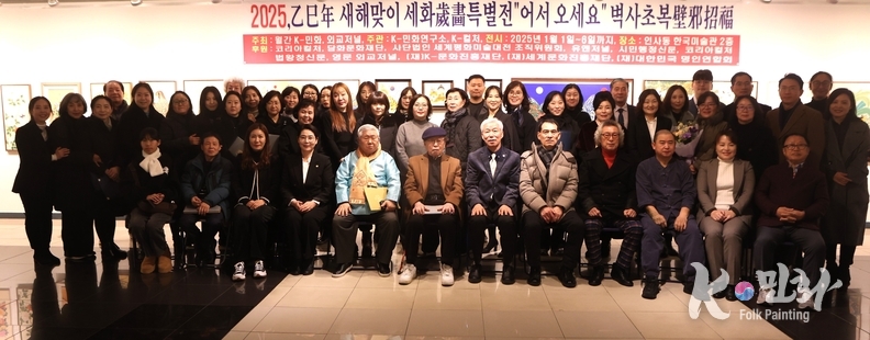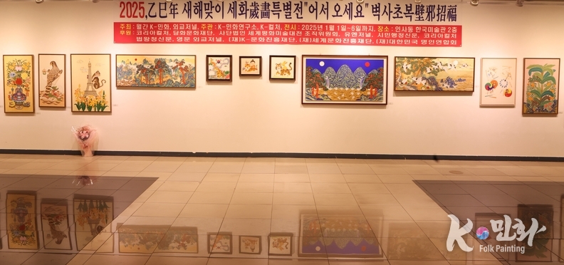 K-민화 이성준 기자 | 乙巳年(2025년) 새해를 맞아 개최된 세화歲畵 특별전 “어서 오세요”가 인사동 한국미술관에서 성황리에 막을 내렸다. 이번 전시는 전통 민화의 일종인 세화歲畵를 현대적으로 재해석하여, 나쁜 기운을 물리치고 복을 불러들이는 벽사초복辟邪招福의 의미를 담아 많은 관람객들의 관심과 호평을 받았다.