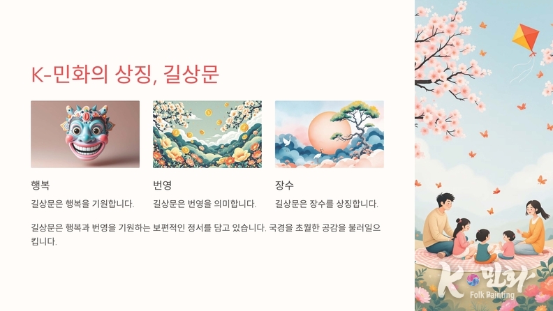 K-민화의 세계화는 단순한 예술 확산을 넘어, 한국적 미학과 철학을 전 세계와 공유하는 중요한 문화 교류의 장이 되고 있다. 길상문吉祥紋과 같은 상징적인 요소들이 담긴 민화는 행복과 번영을 기원하는 보편적인 정서를 담고 있어, 국경을 초월한 공감을 불러일으킨다.