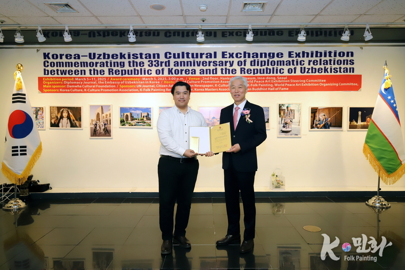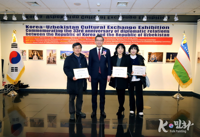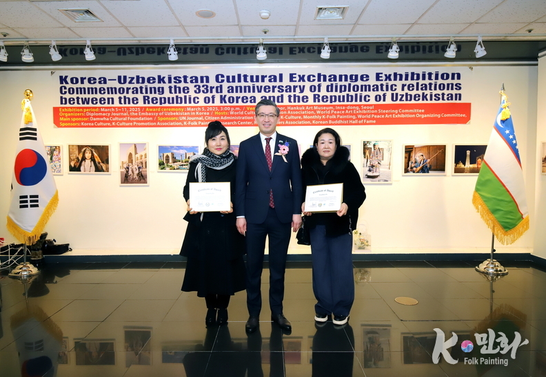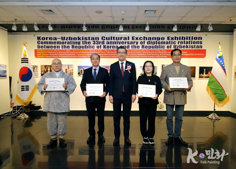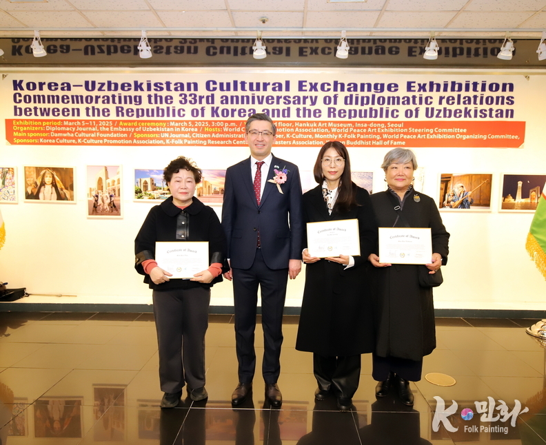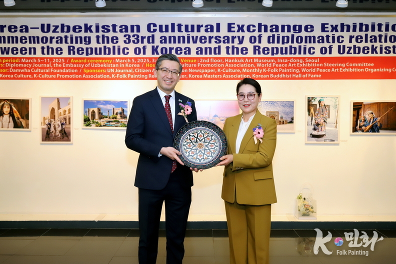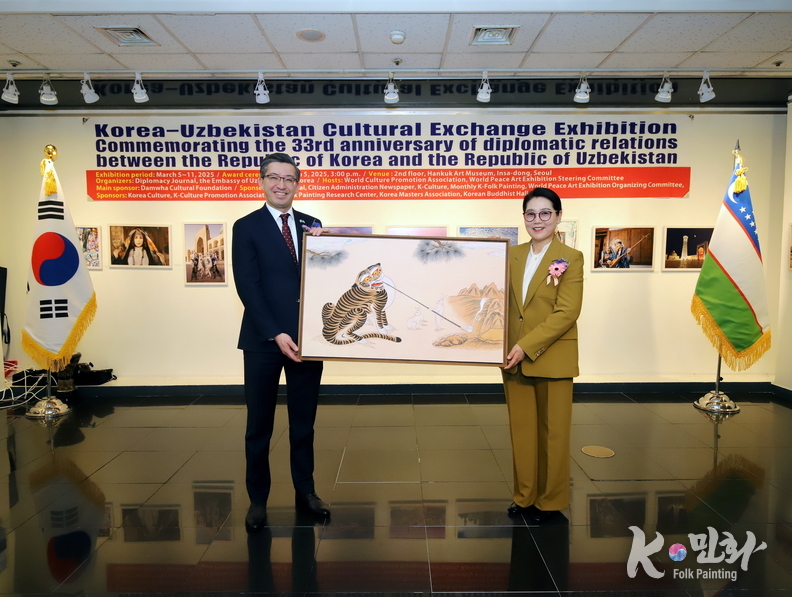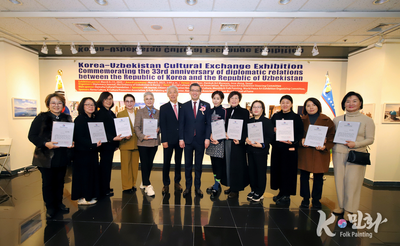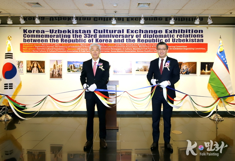 K-민화 이성준 기자 | 대한민국과 우즈베키스탄 공화국의 수교 33주년을 기념하는 특별 문화교류전이 지난 5일 11일까지 서울 인사동 대한민국미술관 2층에서 성대하게 행사가 마무리 되었다. 이번 전시는 양국 간의 문화적 유대감을 증진하고 예술 교류를 활성화하기 위해 기획되었다.