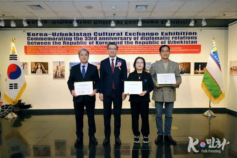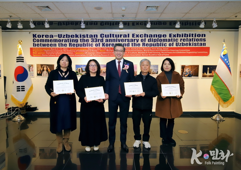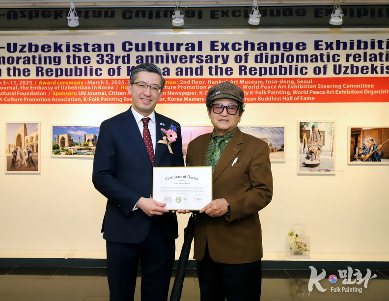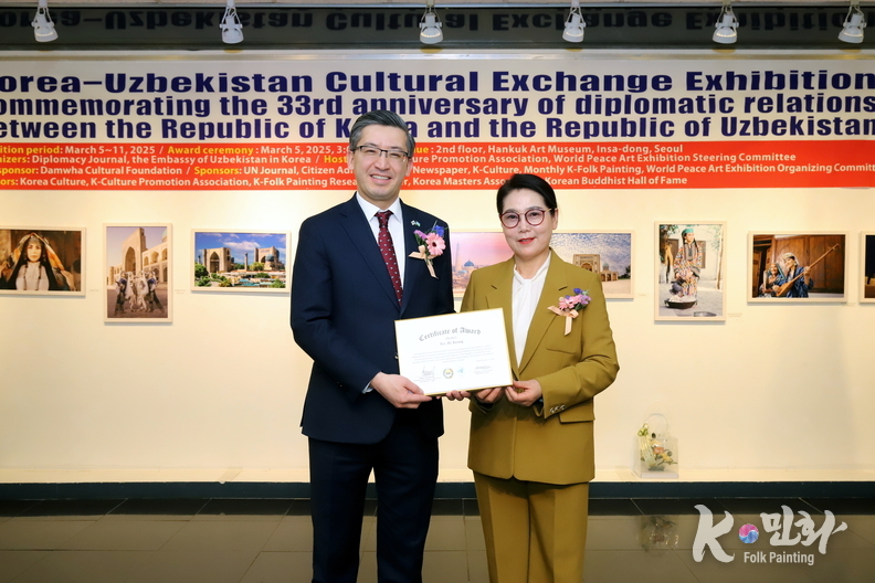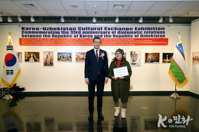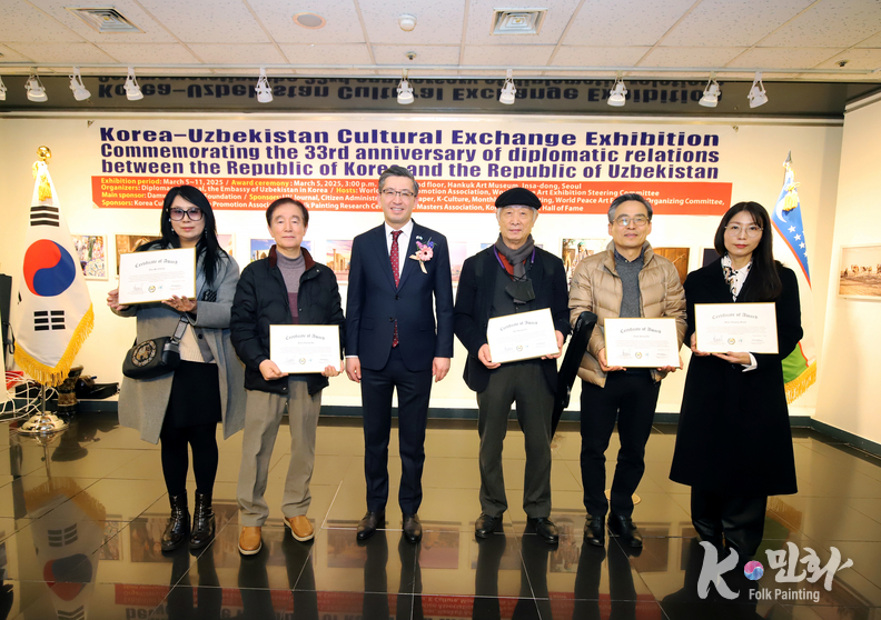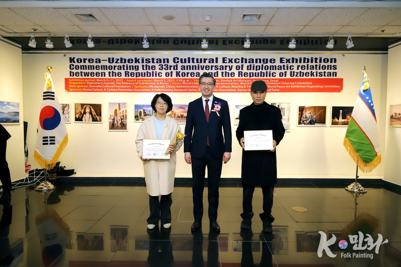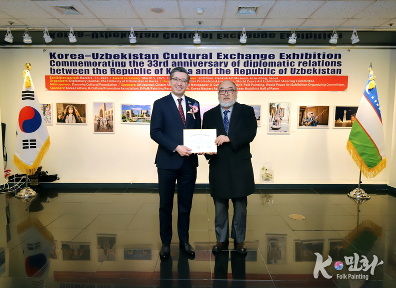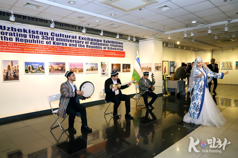 K-민화 이성준 기자 | 대한민국과 우즈베키스탄 공화국의 수교 33주년을 기념하는 특별 문화교류전이 지난 5일 11일까지 서울 인사동 대한민국미술관 2층에서 성대하게 행사가 마무리 되었다. 이번 전시는 양국 간의 문화적 유대감을 증진하고 예술 교류를 활성화하기 위해 기획되었다.
