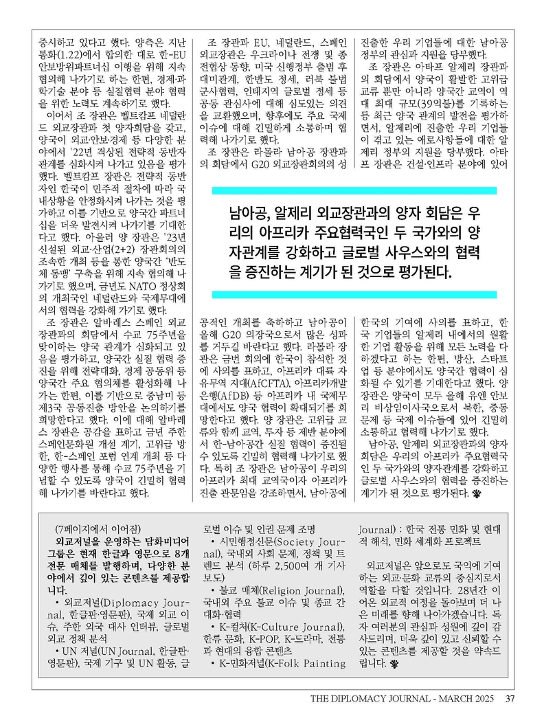 외교저널(Diplomacy Journal, 한글판·영문판), 국제 외교 이슈, 주한 외국 대사 인터뷰, 글로벌 외교 정책 분석