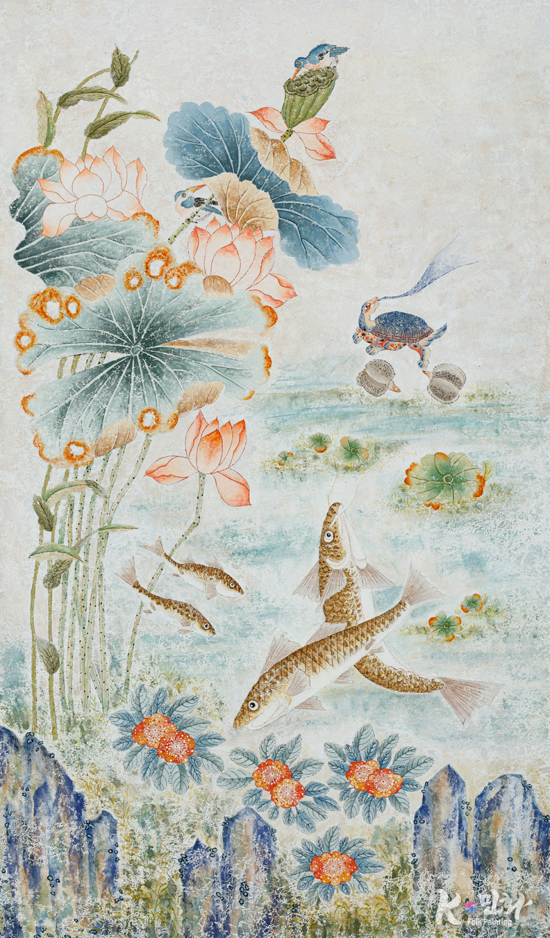 K-민화 김학영 기자 | 연못 위에 떠오른 연잎과 연꽃, 그 사이를 유영하는 물고기, 그리고 연밥 위를 노니는 새와 거북...안영자 작가의 민화 〈연화도〉는 전통 민화의 상징성과 현대적 감각을 절묘하게 결합해낸 작품으로, 민화가 지닌 상징적 언어를 현대적 회화 감성으로 재해석한 수작으로 평가된다.