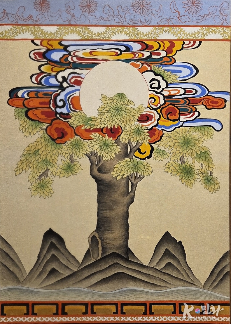 K-민화 이존영 기자 | 해와 달은 원래 하늘의 것이었다. 그러나 민화는 종종 그것들을 땅으로, 삶의 자리로 내려앉힌다. 김정연 작가의 '일월수상도'에서 해와 달은 더 이상 먼 천체가 아니다. 나무의 꼭대기에 머물며, 생명의 시간과 호흡을 함께한다.