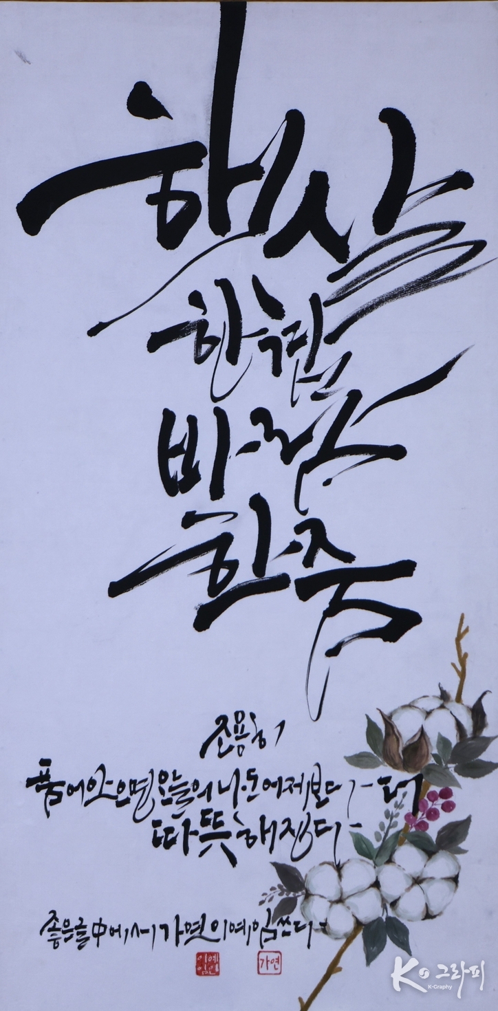 K-그라피의 미학은 여기서 분명해진다. 이 작품은 보여주기 위한 글씨가 아니라 살아가기 위한 글씨다. 오늘의 내가 어제보다 조금 더 따뜻해질 수 있다면, 예술은 이미 제 역할을 다한 셈이다.