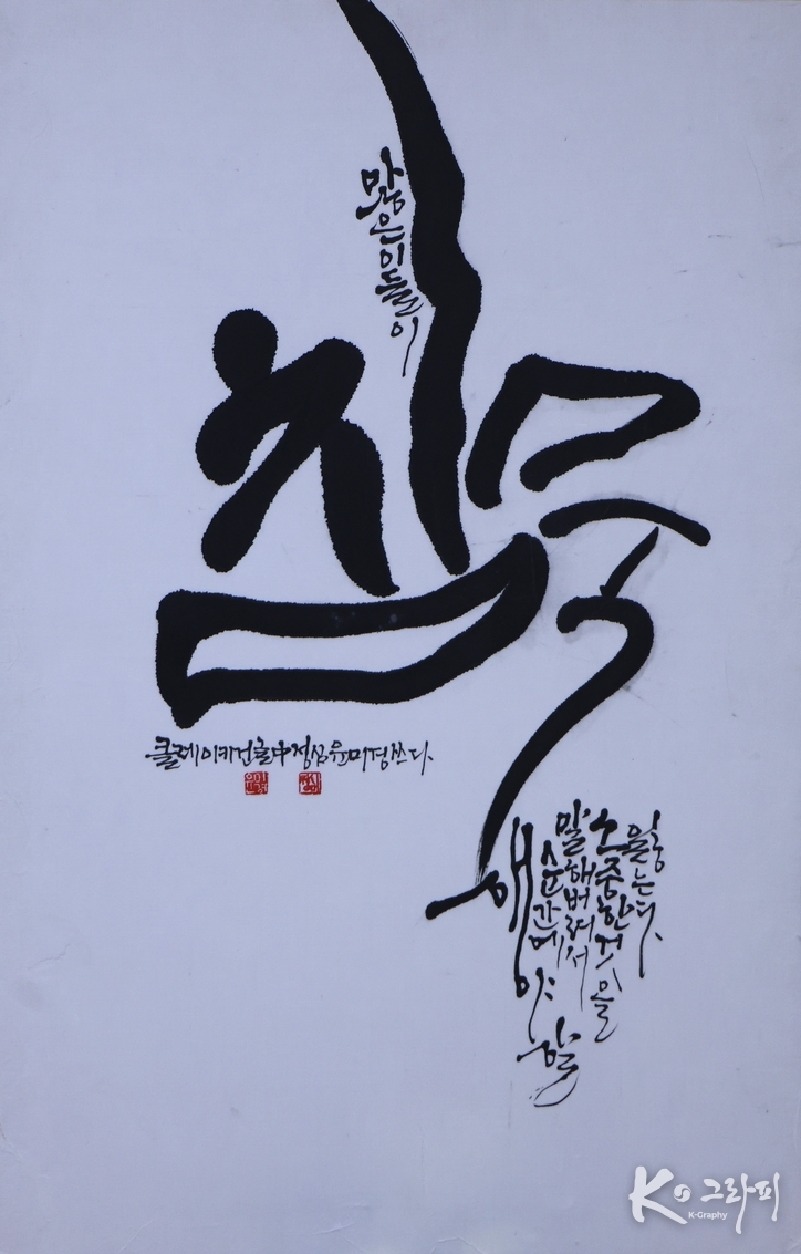 K-그라피의 미학은 이 지점에서 성숙해진다. 이 작품은 말의 미학이 아니라 침묵의 태도를 기록한다. 보여주기보다 지키는 쪽을 택하는 용기와 윤미경 작가의 K-그라피는 그 용기를 검은 먹으로 남긴다.