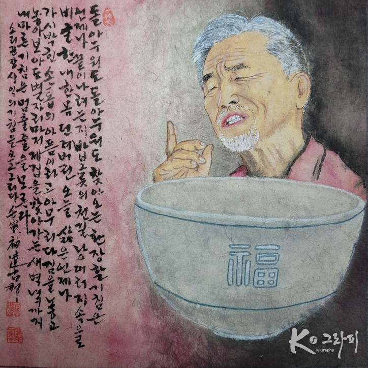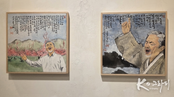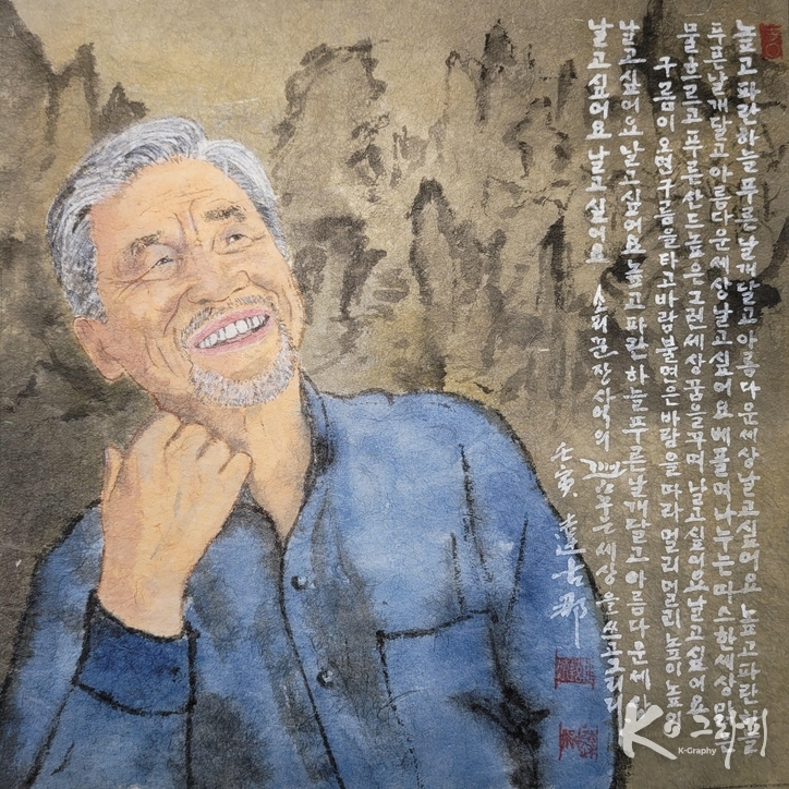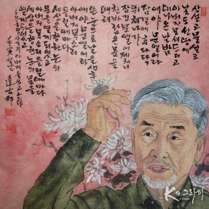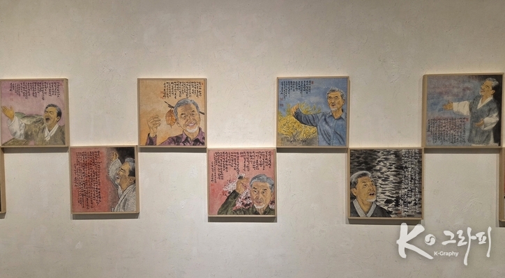 이번 연작은 단순한 초상화가 아니다. 노래하는 순간의 표정, 숨 고르는 찰나의 눈빛, 손끝의 떨림까지 포착하며 ‘소리의 형상화’를 시도한 작업이다. 화면 위에 함께 적힌 글은 노래의 정서와 시적 울림을 더하며, 회화와 문학, 그리고 음악이 하나로 만나는 지점을 보여준다.