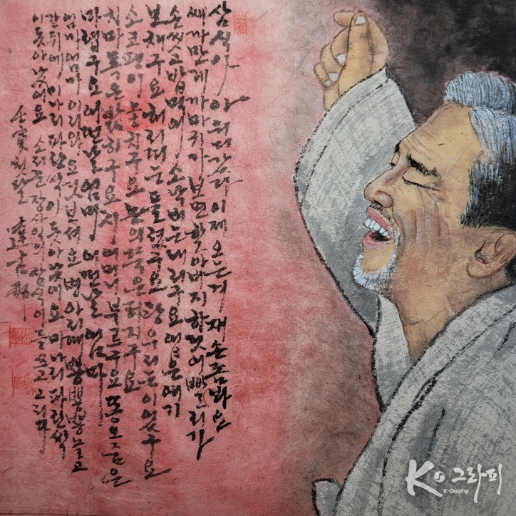 K-그라피 이성준 기자 | 그 속의 얼굴은 노래를 부르고 있지만, 사실은 한 시대를 토해내고 있다. 입은 벌어져 있으나 그 소리는 성대에서 나오는 것이 아니다. 등뼈에서 올라와, 폐부를 긁고, 마침내 하늘로 치솟는다.