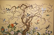 K-민화 이성준 기자 | 이 그림 앞에서는 누구도 서두르지 않게 된다. 노지영 작가의 '화조도'는 한 계절의 풍경을 보여주는 데서 멈추지 않고, 생명이 머무는 방식을 조용히 들려준다. 화면을 가득 채운 매화 가지와 꽃, 그리고 저마다의 자리를 지키는 새들은 ‘움직임’보다 ‘공존’을 먼저 말한다. 화조도는 민화에서 가장 인간적인 장르다. 왕도, 신선도, 호랑이도 아닌 꽃과 새. 일상의 풍경이자 누구나 이해할 수 있는 자연의 언어다. 그러나 노지영의 화조도는 단순한 길상吉祥의 나열이 아니다. 이 작품의 중심에는 하나의 나무가 서 있고, 그 나무를 기준으로 수많은 생명이 각자의 방향으로 흩어지며도 질서를 잃지 않는다. 나무의 줄기는 굽이치되 흔들리지 않는다. 세월의 흔적처럼 패인 옹이와 뒤틀린 가지는 생의 굴곡을 닮았고, 그 위에 핀 매화는 시련 이후에 오는 단단한 아름다움을 상징한다. 꽃은 만개했지만 과시하지 않고, 새들은 날지만 소란스럽지 않다. 모두가 자기 몫의 봄을 살고 있을 뿐이다. 특히 눈에 띄는 것은 새들의 배치다. 까치, 제비, 원앙, 이름 모를 작은 새들까지 이들은 같은 방향을 보지 않는다. 어떤 새는 날고, 어떤 새는 쉬며, 어떤 새는 서로를 바