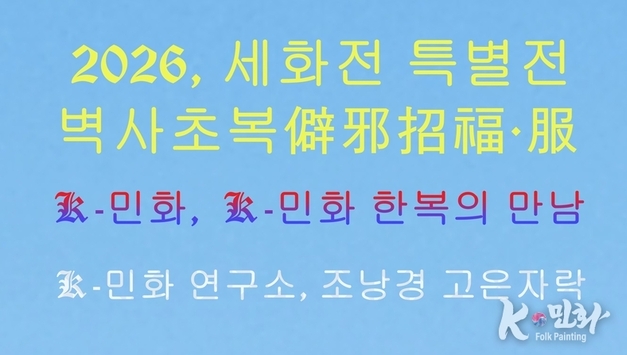 K-민화 이성준 기자 | K-민화에서 말은 언제나 속도의 상징이었다. 출세, 합격, 입신양명. 말은 인간의 욕망을 태우고 가장 빠르게 달리는 존재였다. 그러나 이지연 작가의 '복마福馬'는 다르다. 이 말은 달리지 않는다. 대신 단단히 ‘서’ 있다. 작품 중앙의 백마는 힘찬 질주 대신 균형 잡힌 자세로 자리한다. 말의 등 위에는 책과 문방구, 붓과 종이가 정갈하게 놓여 있다. 이는 단순한 장식이 아니다. 복이란 우연히 굴러오는 행운이 아니라, 공부와 준비, 일상의 축적 위에 놓이는 것임을 말한다. 특히 주목할 것은 ‘복福’의 배치 방식이다. 이 작품에서 복은 외부에서 날아오지 않는다. 말의 몸, 책의 무게, 도구의 질서 속에 이미 내재해 있다. 복은 목표가 아니라 상태이며, 결과가 아니라 태도다. 이것이 이지연의 복마가 전통 민화와 구별되는 지점이다. 책거리와 말의 결합, 생활 민화의 진화의 복마는 책거리의 상징 체계를 차용하면서도 이를 한 단계 확장한다. 책은 지식이고, 붓은 실천이며, 말은 이동이다. 이 세 요소가 한 화면에 공존할 때, 민화는 더 이상 과거의 길상도가 아니다. 오늘을 사는 사람의 생활 철학이 된다. 말 아래에 배치된 꽃문 장식과 둥근 기물