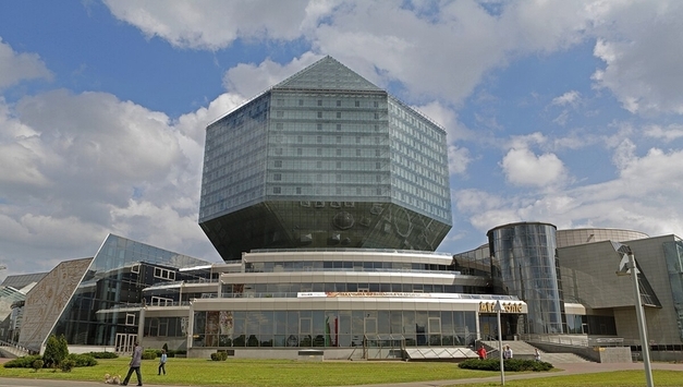 K-민화 벨라루스 김선아 특파원 | 벨라루스의 수도 민스크에는 밤마다 거대한 다이아몬드가 빛난다. 그 주인공은 바로 벨라루스 국립도서관(National Library of Belarus)이다. 1922년 설립된 이 도서관은 2006년 새롭게 완공된 현대식 건물을 통해, 지식과 예술이 공존하는 복합문화공간으로 거듭났다. 건축가 빅토르 크라마렌코와 미하일 비노그라도프가 설계한 이 도서관은 23층 높이의 다면체 구조로, ‘롬비큐보옥타헤드론(rhombicuboctahedron)’이라는 독특한 형상을 취하고 있다. 이는 ‘지식을 품은 보석’을 상징하며, 유리로 이루어진 외벽은 낮에는 태양빛을 받아 반짝이고, 밤이 되면 4,600여 개의 LED 조명이 켜져 도시 전체를 환하게 밝힌다. 민스크 시민들은 이 불빛을 “하늘 위의 팔각등”이라 부르며 사랑한다. 내부에는 약 1,000만 권의 장서와 희귀 고문서가 보존되어 있다. 2,000명이 동시에 열람할 수 있는 열람실, 500석 규모의 컨퍼런스홀, 그리고 민스크 시내를 한눈에 조망할 수 있는 23층 전망대까지, 이곳은 단순한 도서관이 아니라 지식과 예술, 관광이 공존하는 복합 문화의 허브이다. 특히 국립도서관은 지식의 상징