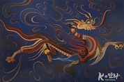 K-민화 이성준 기자 | 청룡도는 전통적으로 동쪽을 상징하며 생명의 시작과 성장, 새로운 탄생을 의미하는 청룡靑龍을 표현한 그림이다. 동양 철학과 오행五行 사상에서는 동쪽이 나무木의 방향으로, 봄을 나타내며 생명력이 넘치는 계절과 연결된다. 청룡은 봄에 나타나는 동물로, 바람을 다스리고 자연의 에너지를 조화롭게 유지하는 존재로 묘사되고 있다. 청룡도는 쌍각雙角과 긴 혀를 내밀고 있는 청룡이 구름과 인동당초무늬忍冬唐草紋 위를 나는 형상으로 그려져, 역동적이고 생동감 넘치는 장면을 연출한다. 구름은 하늘과 연결되어 하늘의 기운을, 인동당초무늬는 생명력과 무한한 번영을 의미하는 상징으로, 청룡의 힘과 조화를 더해 준다. 이는 청룡의 존재가 단순한 신화적 상징이 아닌, 자연의 조화와 생명력을 상징하는 이미지를 강화하는 역할을 한다. 작품은 크기 100호로 제작되었으며, 삼베 바탕에 생옻칠을 입힌 후 색칠(채칠)로 청룡을 화려하고 생동감 있게 표현하고 있다. 삼베와 생옻칠은 한국 전통 소재로, 삼베의 거친 질감과 생옻칠의 깊고 은은한 광택이 청룡의 신비로운 기운을 더욱 돋보이게 한다. 채칠은 전통적인 방식으로 다양한 색채를 겹겹이 쌓아 올려 색의 깊이감을 나타내며,