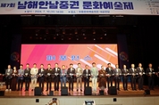 '제7회 남해안남중권 문화예술제'가 하동군문화예술회관에서 지난 10일∼12일 성황리에 개최됐다. 이번 행사는 남해안남중권발전협의회(회장 김철우 보성군수, 이하 '남중권협의회') 주최하동군(군수 하승철), 한국예총 하동지회(지회장 손종인) 주관으로 진행됐다. 예술제 기간에는 시화, 미술, 사진, 서예, 서각, 민화 등 각 분야의 작품 전시와 더불어 발효차 시음, 한궁, 뽑기, 무료 팝콘 배부 등 다양한 체험행사가 함께 펼쳐져 관람객에게 참여의 즐거움을 선사했다. 하동군립예술단의 식전 공연으로 시작을 알린 10일 개막식에는 9개 참여 시군 단체장과 지역예술인이 한자리에 모여 '예술로 하나 되는 남해안남중권' 비전을 제시했다. 이어서 지역예술인으로 구성된 밴드, 국악, 무용 등 9개 팀의 다양한 문화교류 공연은 참가자와 관람객에게 지역의 문화적 가치와 창작 의욕을 고취하는 기회의 장을 마련했다. 둘째 날 청소년 경연 페스티벌에서는 남해안남중권 지역 중·고등학생 8개 팀이 댄스와 밴드 실력을 뽐냈으며, 비보이팀 MB크루의 화려한 댄스 퍼포먼스 축하공연에 관객의 뜨거운 호응이 더해져 경연장의 분위기를 한층 끌어올렸다. 마지막 날에는 아마추어 합창단들이 페스티벌이 열려
