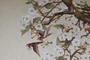 K-민화 이성준 기자 | 박용운 작가의 이 작품은 ‘봄’이라는 계절을 그리는 데서 멈추지 않는다. 화면 속 꽃은 단순한 식물이 아니라 시간의 문을 여는 존재이며, 그 사이를 가로지르는 새의 비상은 변화의 순간을 상징한다. 정지된 풍경 속에서 유일하게 움직이는 존재인 새는, 이 그림 전체에 생명과 방향을 부여한다. 굵고 단단한 가지는 시간의 축적을 닮았고, 그 위에 피어난 꽃들은 기다림 끝에 도달한 결실처럼 보인다. 하얀 꽃잎이 바람에 흩날리는 장면은 덧없음이 아니라, 다시 피어날 것을 이미 알고 있는 존재의 여유다. 이는 민화 화조도가 지녀온 본래의 미덕이자 자연을 통해 삶을 위로하는 기능을 충실히 계승한 해석이다. 박용운의 붓은 과장되지 않는다. 색은 절제되어 있고, 여백은 넉넉하다. 그 덕분에 관람자는 장면을 ‘보는’ 데서 그치지 않고, 그 안에 잠시 머문다. 꽃과 새, 바람과 시간은 서로를 방해하지 않고 공존하며, 화면은 하나의 조용한 문장이 된다. 이 작품은 말한다. 봄은 갑자기 오지 않으며, 비상은 준비된 가지 위에서만 가능하다고. 그래서 이 그림은 계절화이자 삶의 은유다. 조급하지 않아도 괜찮다는 믿음, 그리고 때가 오면 자연스럽게 날아오를 수 있