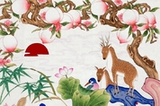 K-민화 김학영 기자 | K-민화 전문 작가 담화총사의 신작 『복사꽃 미소에 머문 사슴』이 한국 전통 민화의 길상적 상징과 현대적 감수성을 절묘하게 조화시키며 주목을 받고 있다. 이번 작품은 복숭아꽃(복사꽃), 연꽃, 사슴 등 민화 속 대표적인 길상 소재를 통해 복福과 수壽, 평화와 생명의 메시지를 전한다. 담화총사는 이를 전통적인 소재 해석에 머물지 않고, 신화적 서사와 정적인 자연의 순간을 결합해 감성적으로 풀어내고 있다. 그림에 담긴 이야기는 ‘신과 인간의 경계가 열려 있던 아득한 옛 시절’에서 출발한다. 영원의 숲을 떠난 사슴 한 쌍이 인간 세상의 끝자락에 이르렀고, 그들이 도착한 곳은 연꽃이 피어나는 고요한 연못가다. 그곳에서 복사꽃은 마치 미소 짓듯 활짝 피고, 붉은 해가 떠오르며, 자연은 한순간 축복의 메시지를 전한다. 이 장면은 단지 시적인 풍경이 아닌, 작가가 전하고자 하는 이상향의 형상화다. 하늘에서는 물새가 내려와 노닐고, 모란과 국화, 파초와 조롱박까지 온갖 길상 식물들이 만개한 이 정원은 자연과 인간, 신과 생명이 하나로 어우러지는 순간이다. 작품 속 사슴은 그 가운데 조용히 서서 관람자에게 속삭이듯 말한다. “여기가 바로 복과 수,